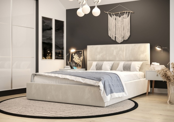 Elga to mebel, który łączy wygodę i estetykę. Dzięki wysokiemu zagłówkowi prezentuje się elegancko i zapewnia komfort użytkowania, a opcjonalny pojemnik zwiększa funkcjonalność. To łóżko, które podniesie standard każdej sypialni.