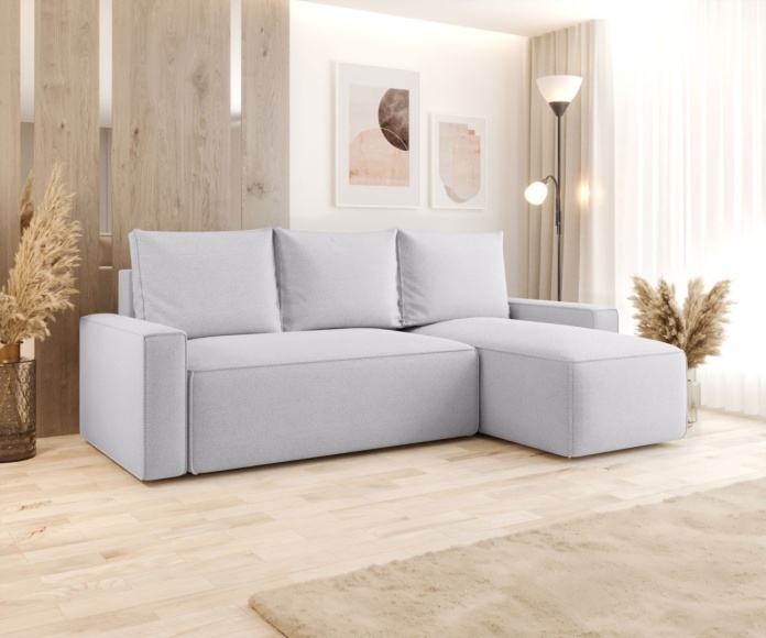 Sofa funkcjonalna z funkcją spania Savio prawy, ze schowkiem na pościel